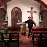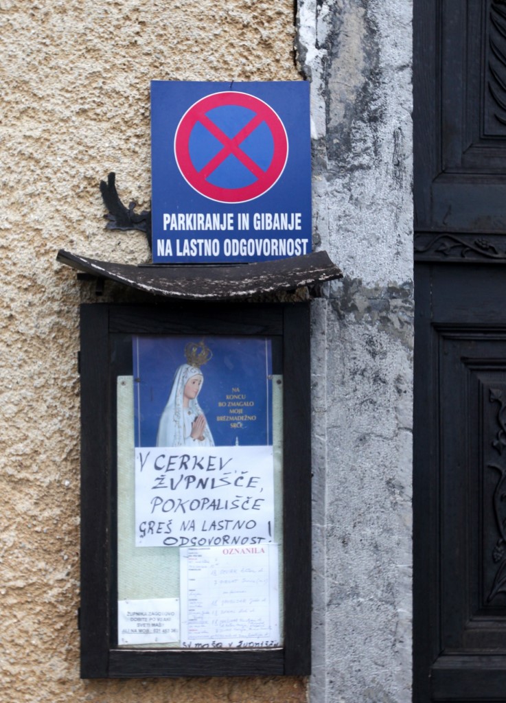 Ob tem pokaže globoko pod brežinski zid, ki nad cesto zadržuje svet s cerkvijo: »Ko so zgradili cerkev in še dolgo potem spodaj vozile vprege, zdaj pa tovornjaki s hlodovino in cisterne. Samo zamislite si, kakšne vibracije so to in kako počasi, a vztrajno na okolico delujejo rušilno.«