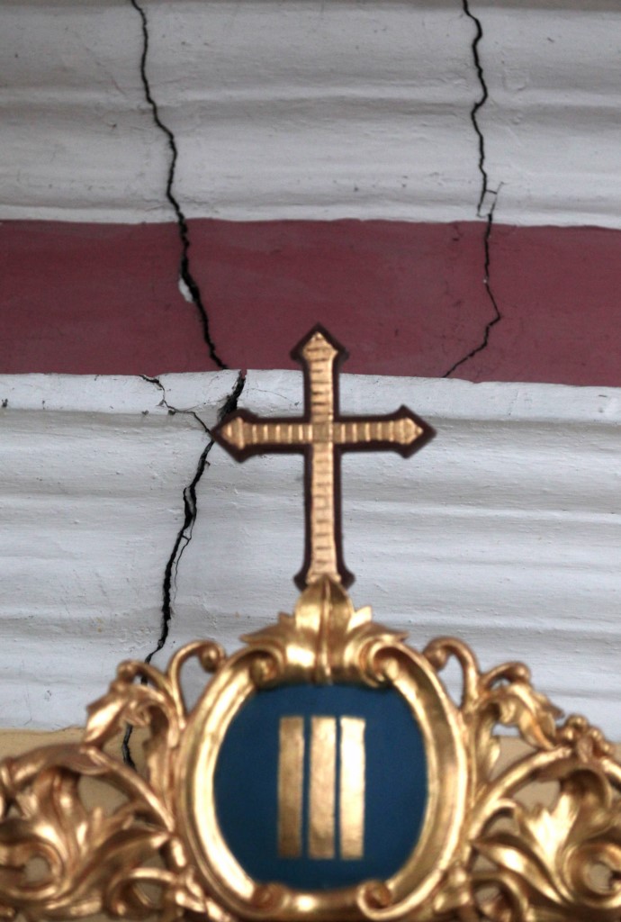 V tukajšnjem kmečkem zaledju dolinskih rudnikov se je ohranila še marsikatera stara navada, ki jih je drugod čas že odpihnil. Tako so se župljani vse do zadnje maše moški in ženske strogo ločeno posedali vsak v svojo polovico klopi. Razpoke so precej bolj grozeče nad moško stranjo. A ko je župnik zaradi varnosti nagovarjal »Pejte, možakarji, na žensko stran sedet’,« ni hotel v žensko polovico prestopiti – niti en sam!